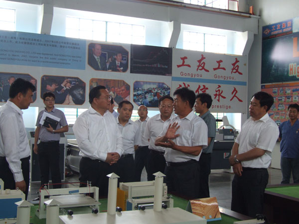 孙述涛书记一行参观了样品室,听取了公司董事长董延伟对公司发展状况的汇报。他们看到公司与意大利合作研发生产的五种木工机床的外形不仅新颖,而且了解到这些新产品的性能比传统的木工机械更加先进、更加精密时,对公司的大胆改革创新给予了高度的赞扬,对公司紧跟市场转方式调结构的做法表示肯定。孙书记还鼓励说,公司要在科技创新、技改投入上多下功夫,使传统的木工机械行业焕发新的活力。